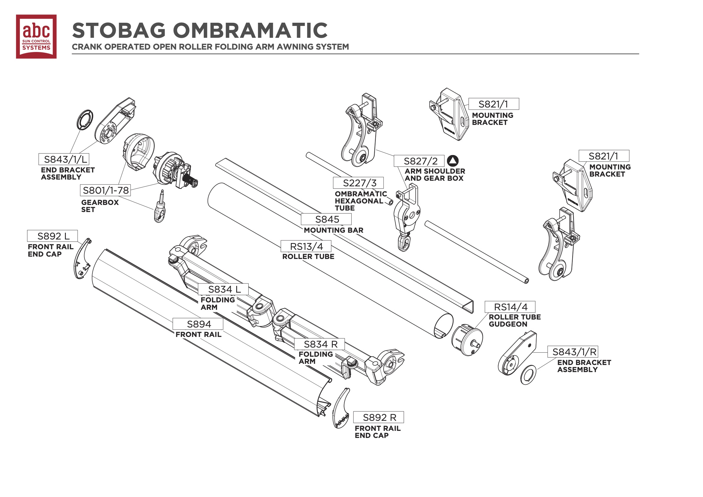 The unit design incorporates an end bracket with a horizontal orientation and rounded front rail that provides a clean and sleek architectural finish when the unit is retracted. The awning can be easily mounted to walls, soffits, roof rafters, or roof brackets. The units also feature easy continuous pitch adjustment using the adjusting screw on the arm bearing or with the optional Ombramatic gearbox for simultaneous pitch adjustment by an operating crank handle on the two arm size range.